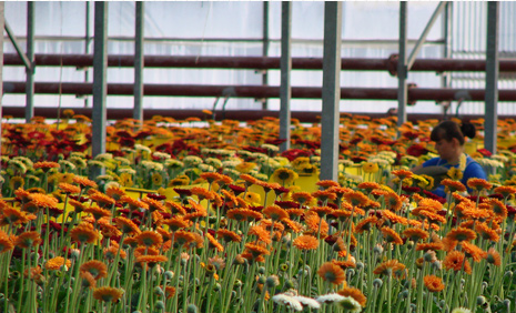 Numa área de produção de 40 hectares de estufas climatizadas e ainda 15 hectares de plantação ao ar livre são produzidas cerca de 50 variedades de flores.